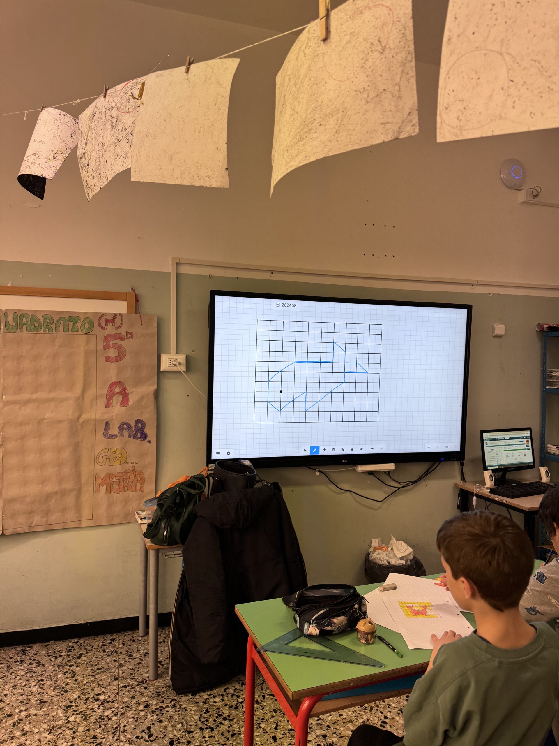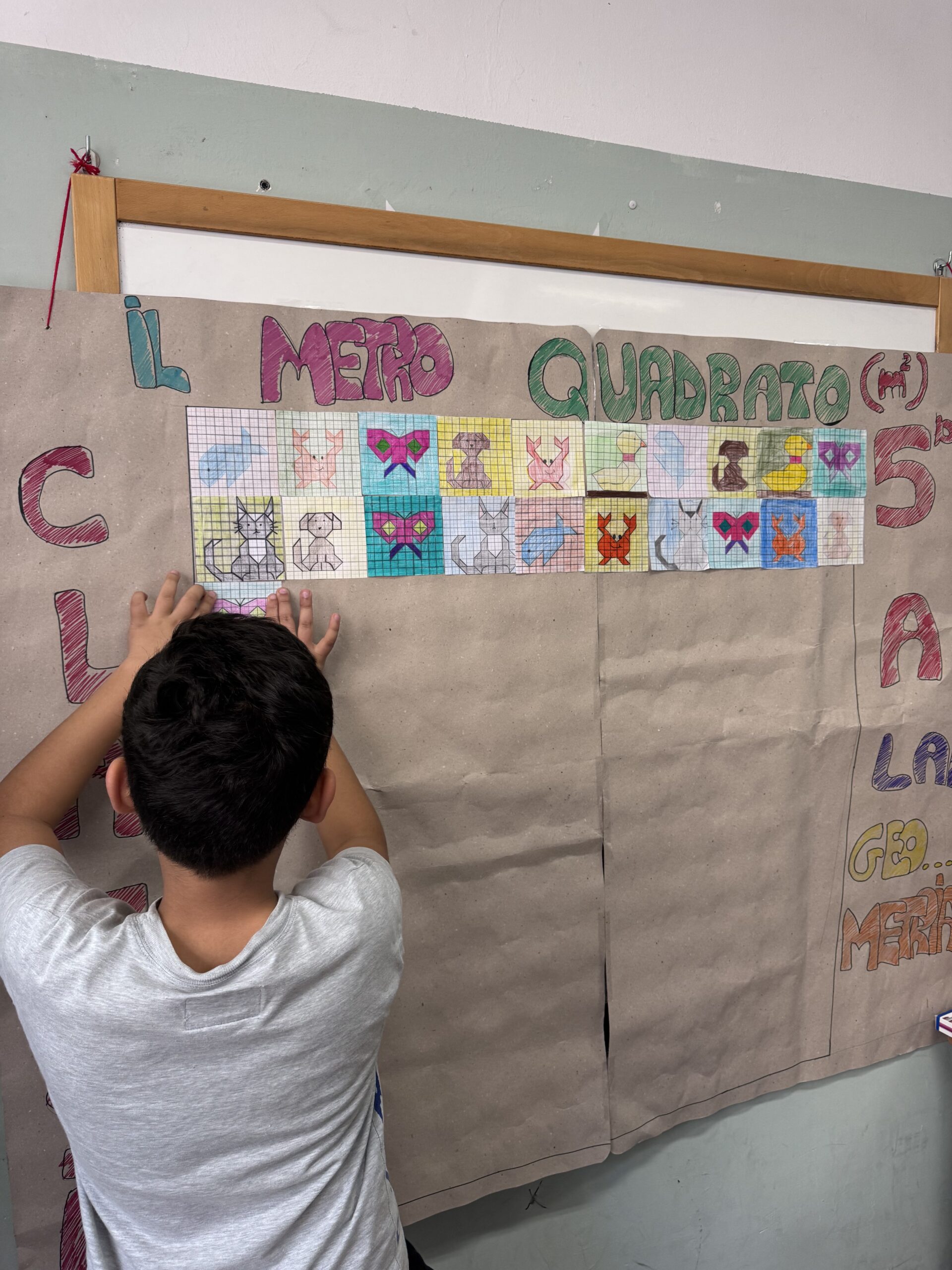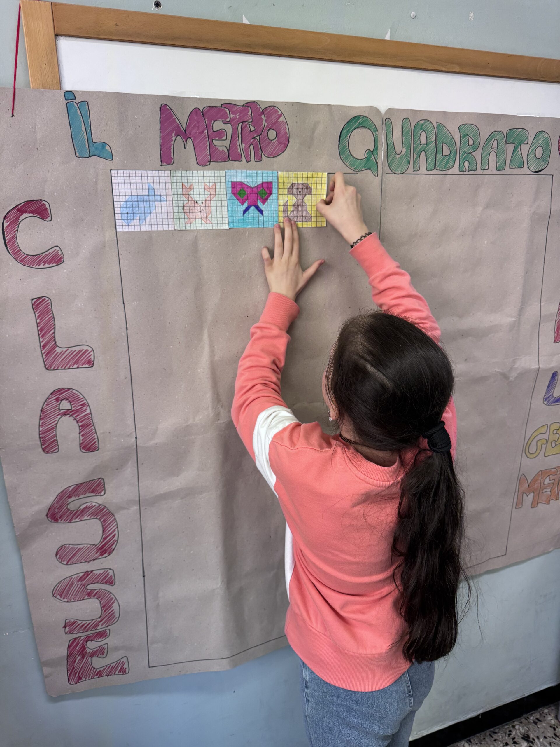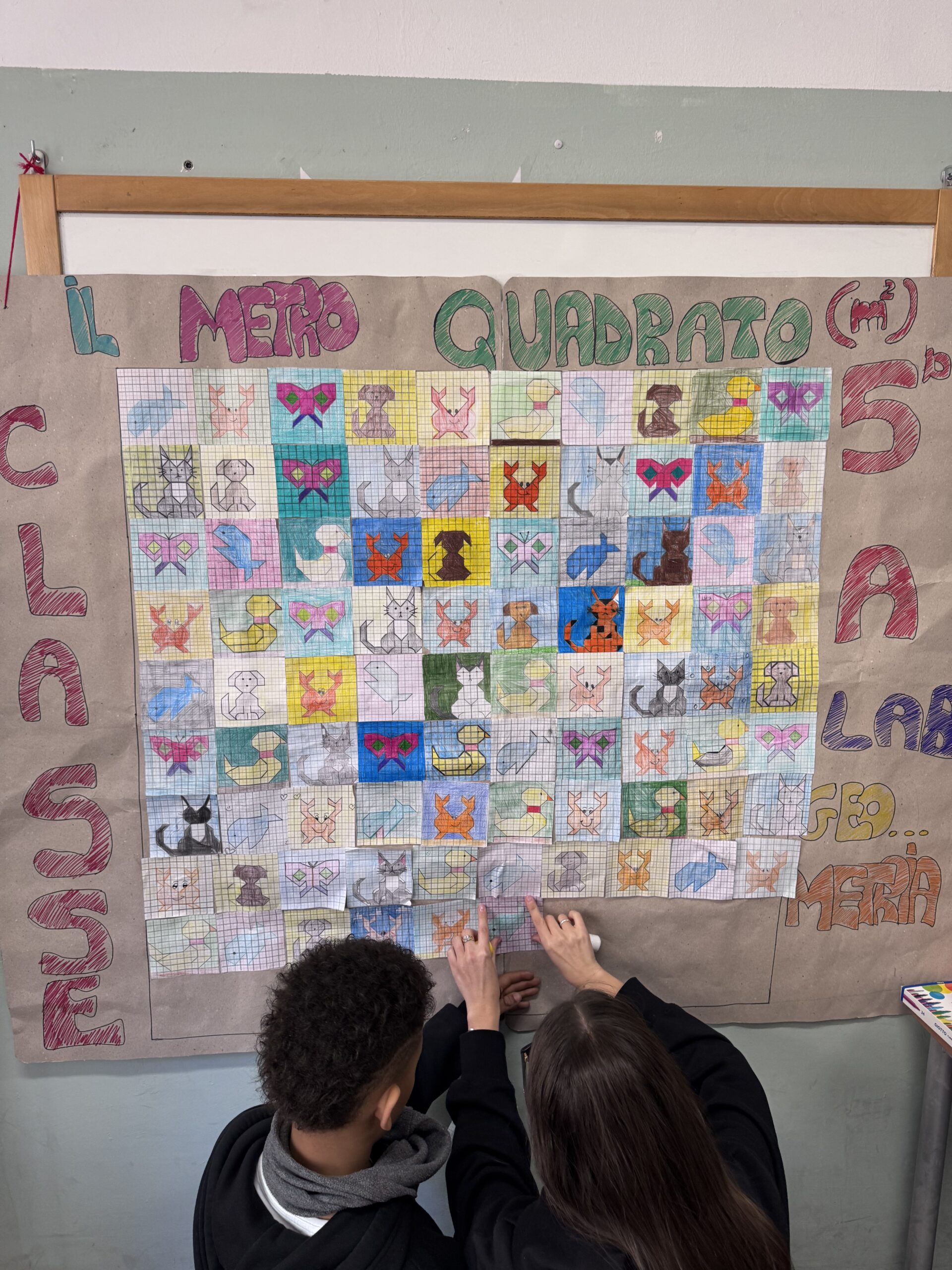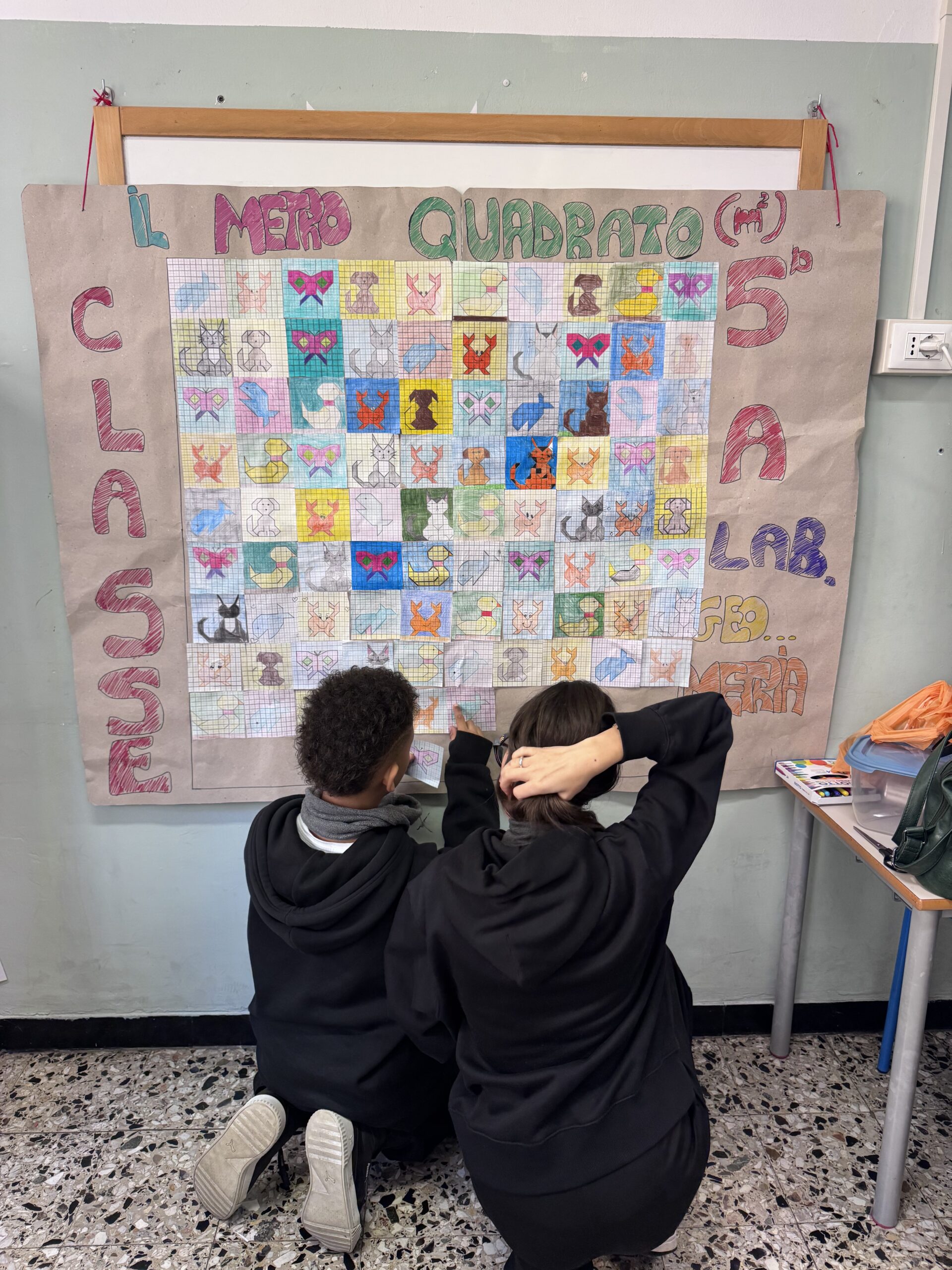 Abbiamo costruito il metro quadrato con le piastrelle disegnate dai bambini.